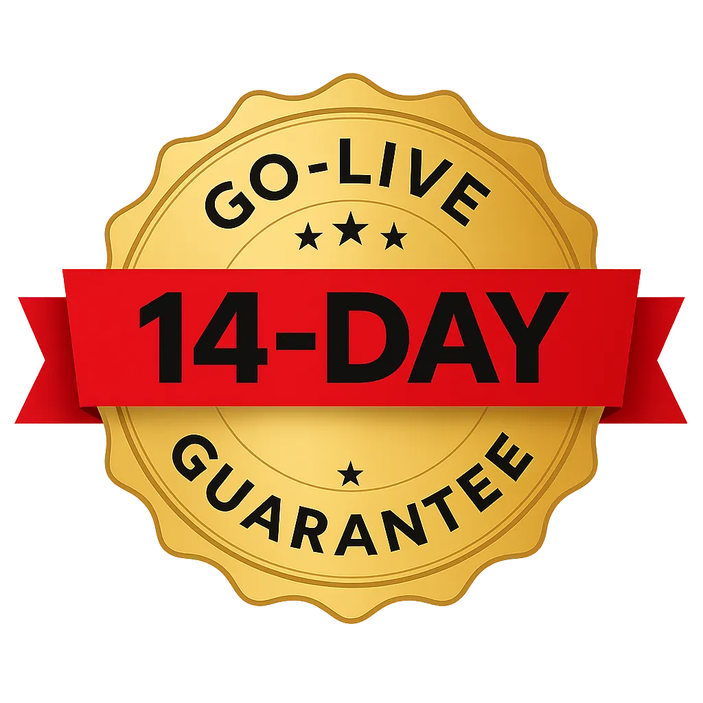 No design or setup fees - just pay your first month of hosting to get started. 14 day go-live guarantee.
